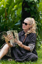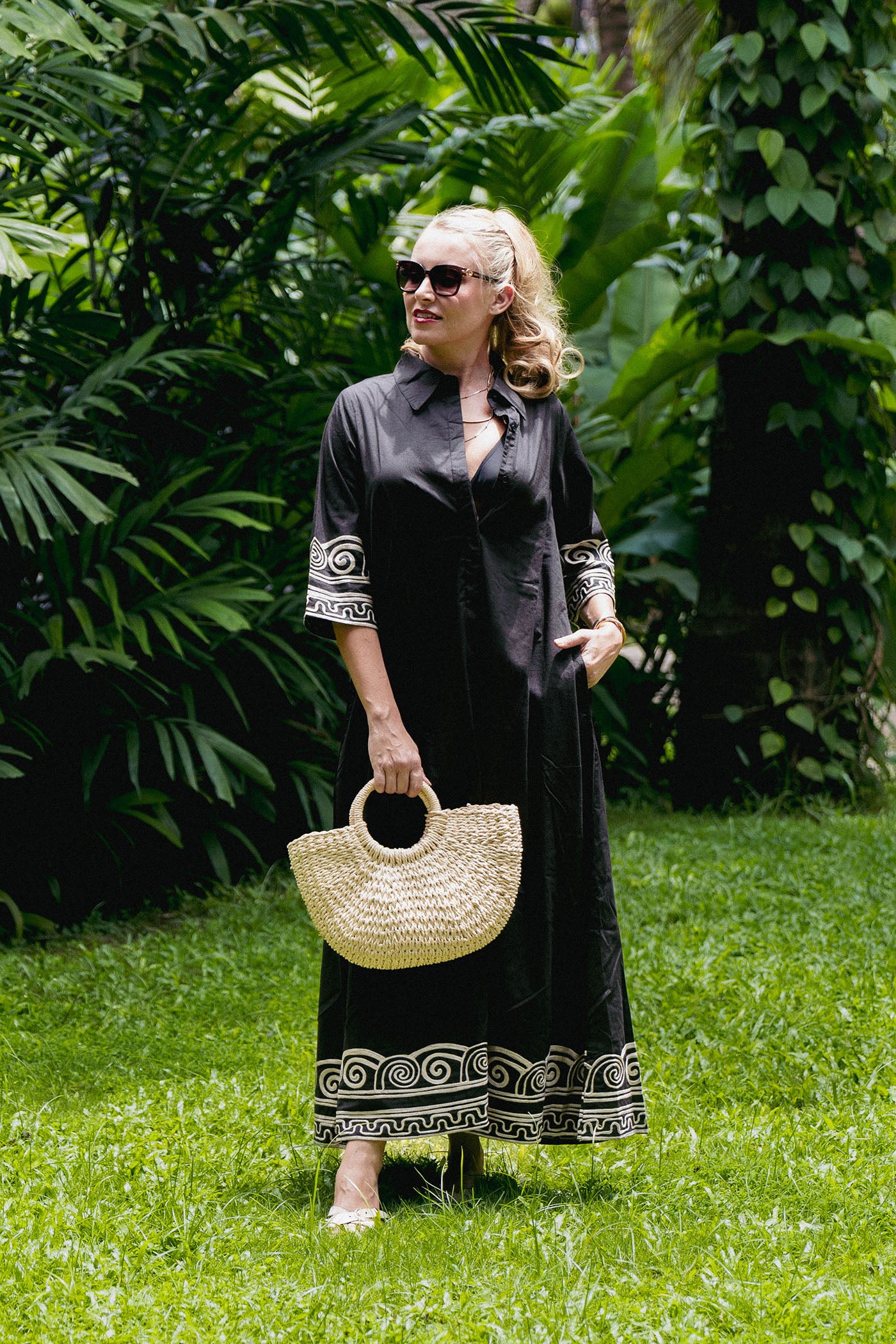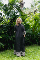 Elegant shirt dress with Aari embroidery on 3/4 sleeves and bottom, offering a blend of traditional artistry and modern charm.