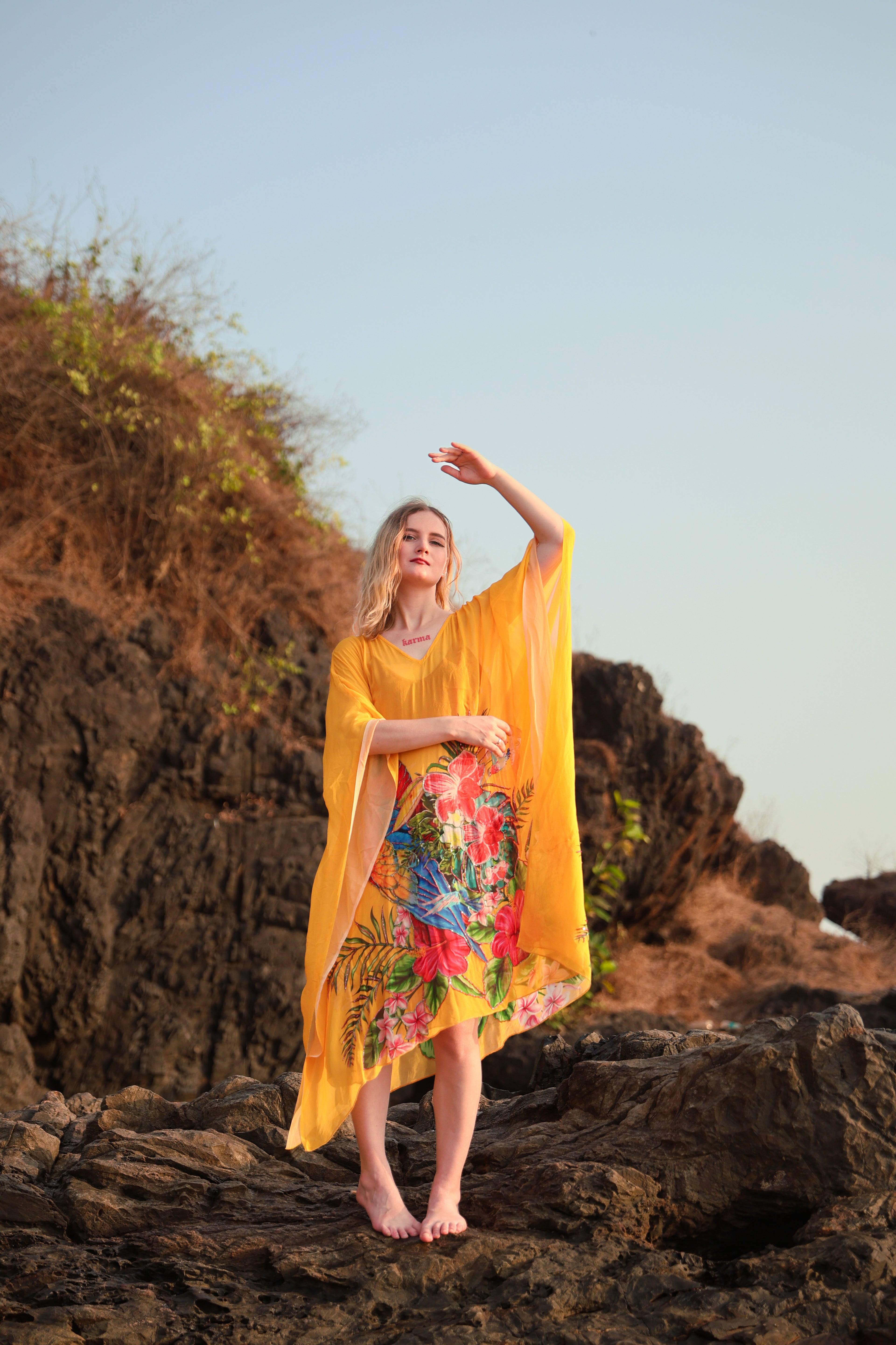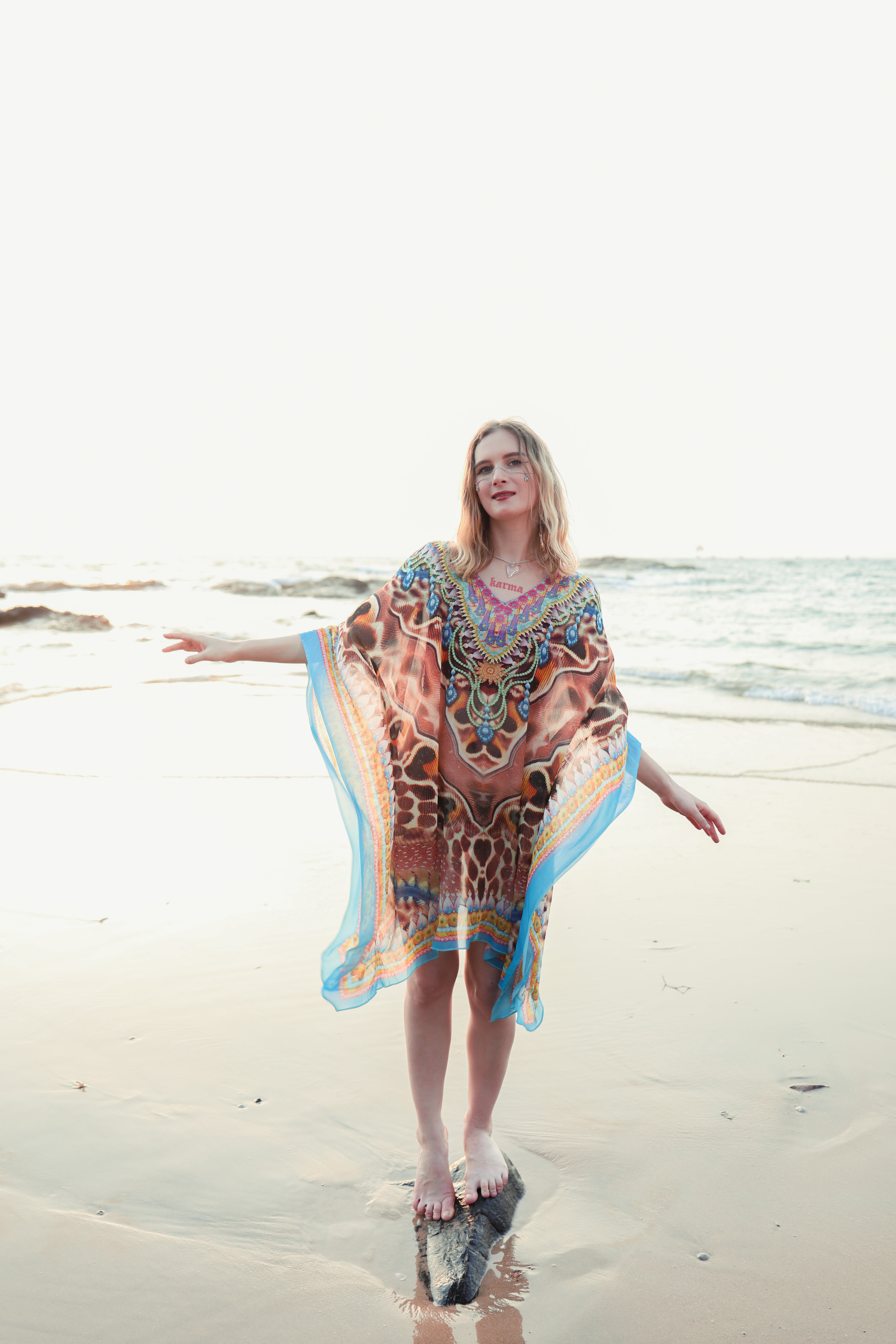 Sundowner Dream Capsule captures the golden-hour magic of twilight — that dreamy, sun-kissed moment when the day melts into warm glows, and effortless celebration. Our kaftans in this line flow like a gentle breeze, draped in luminous fabrics and subtle prints that shimmer as the light fades, embodying a free-spirited muse who radiates quiet confidence and bohemian allure. Perfect for sunset lounging, rooftop evenings, or any golden-hour escape where you want to feel radiant, relaxed, and utterly dreamlike.