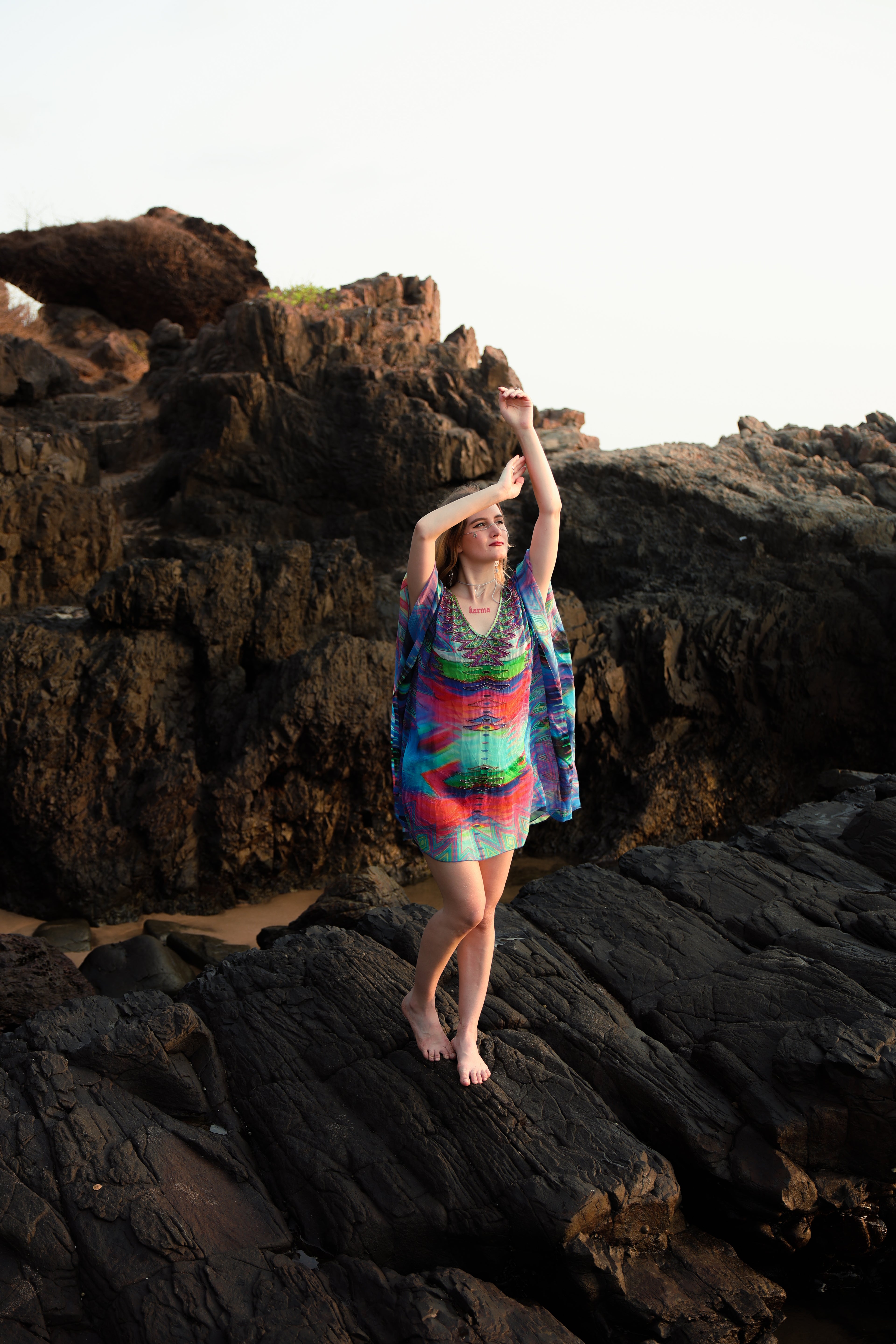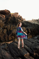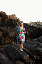 Designed to make a refined statement, this short kaftan is crafted from a lightweight, fluid fabric that drapes effortlessly over the body. The rich interplay of vibrant hues and artistic geometric patterns creates a striking visual appeal, while the relaxed kaftan silhouette offers understated elegance and comfort. A thoughtfully detailed neckline adds a touch of sophistication, making this piece ideal for resort escapes, beachside soirées, and intimate gatherings. Effortless yet expressive, this kaftan embodies modern luxury with a free-spirited edge.